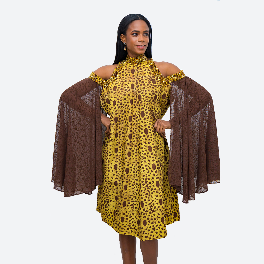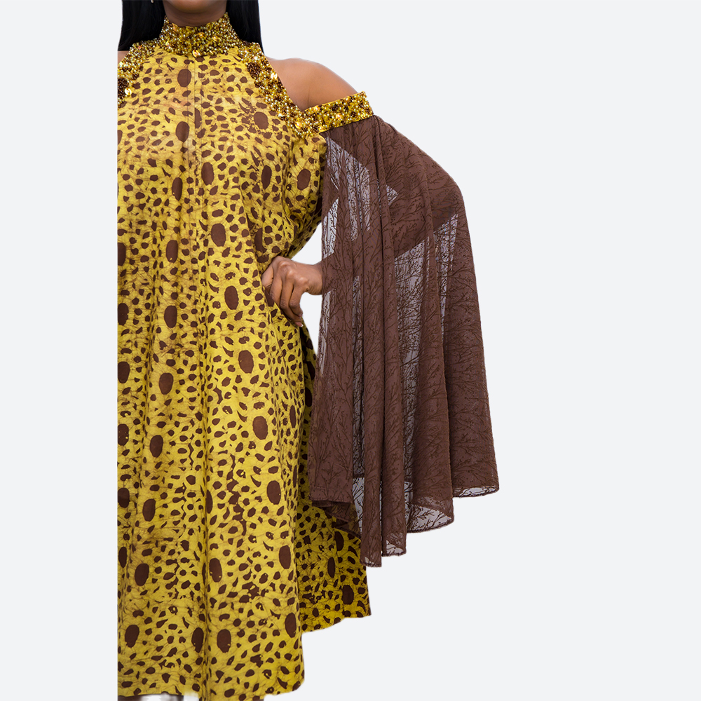 Be the first to review “Beaded Drop Shoulder High Neck Dress with Flare Net Sleeve” Cancel reply